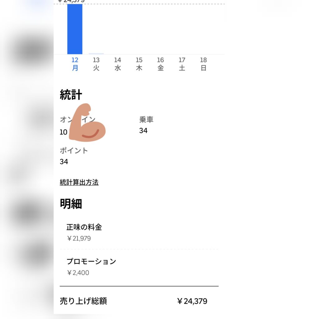 売上34,339円から経費を引いても32,000円以上の純利益が残る計算です。やはりバイクは経費対効果のバランスが良いですね。