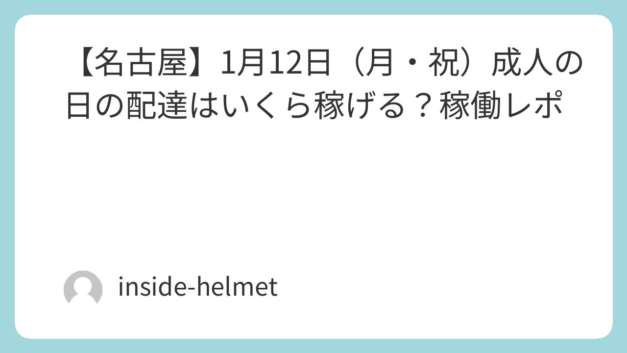 3連休の最終日、寒さに負けじと12時間フル稼働してきましたので、その結果を共有します。これから名古屋で稼働しようと思っている方の参考になれば嬉しいです。